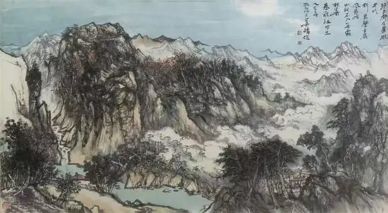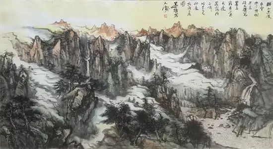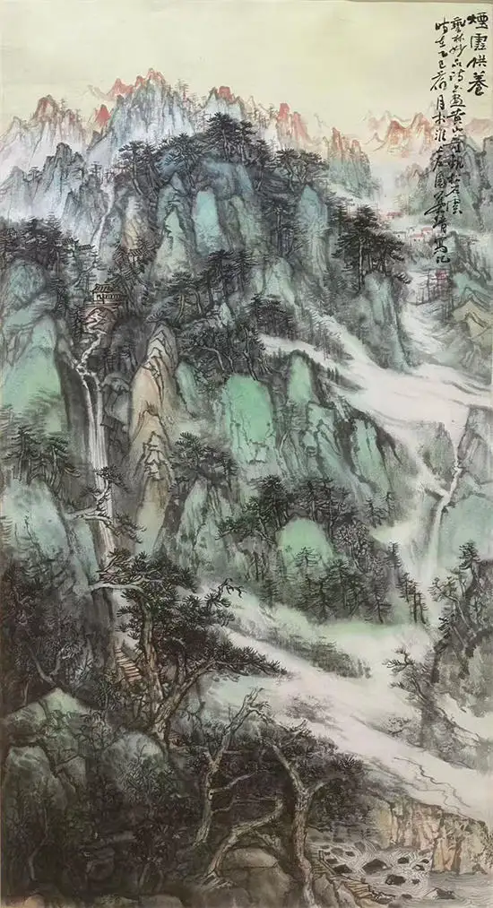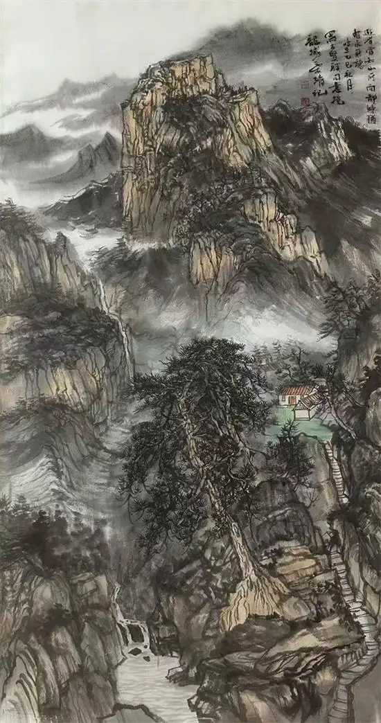 吾于绘事,几十年矣。与赵孟頫之“久知图画非儿戏,到处云山是吾师。“心有戚戚焉。又,山水之形,成之于笔,而润之以墨,泽之以色。笔非生活不神,墨非蒙养不灵。千里江山,万里水域,竖画三寸当千仞之高,横墨数尺体百里之逥,此谓山水画也。古典山水多以自然之美为宗,以典雅、诗意为旨归。此文脉绵延至今,时过境迁,虽有其不足以达吾心,缘于其当代生活方式之变更。山河万里,朝出暮归,古时荒山野水,而今山城海市,犹如海市蜃楼也。石涛僧云:”笔墨当随时代“,此言不虚也。吾于此,以笔墨写祖国山河万里之意境,绘生活璀璨之新象。
