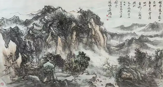 山水在中国文化的语境中,不仅是广袤无垠,千里绵延之山脉,浩瀚无边,汹涌澎拜之水景,更是中国人心系祖国山河的一份赤诚的情怀。庄老告退,而山水方滋。这是山水风景嬗变为山水画艺术的历史契机。山水画家,以一管之笔,拟太虚之体,太虚可以形象为山水意象,崇山峻岭,溪水深涧则寄托宋人林泉之心,构筑山水崇高之美。平远溪山,湖光潋滟,呈现元人山水家园的一份静谧与宁静,这又是山水优美之境也。吾山水取法宋元,盖出于此也。