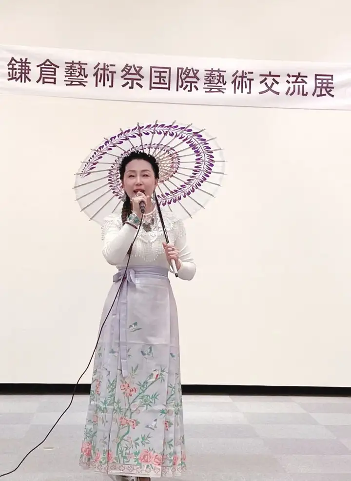 11月16号正是24节气的“立冬”,在开幕仪式上何文将立冬之花《山茶花》用中日两国语言深情演唱。