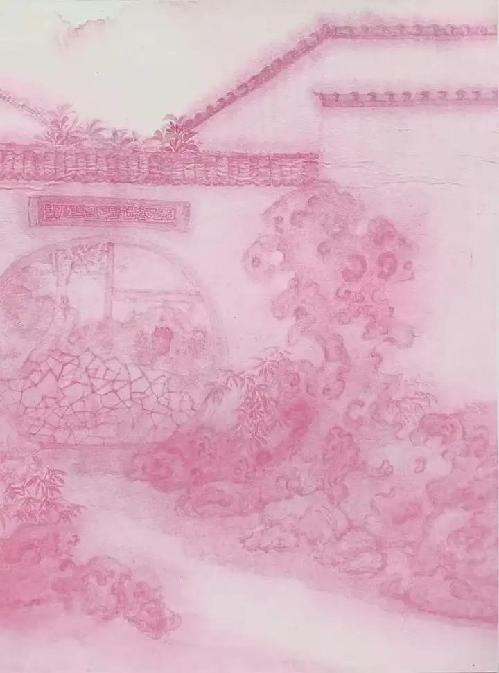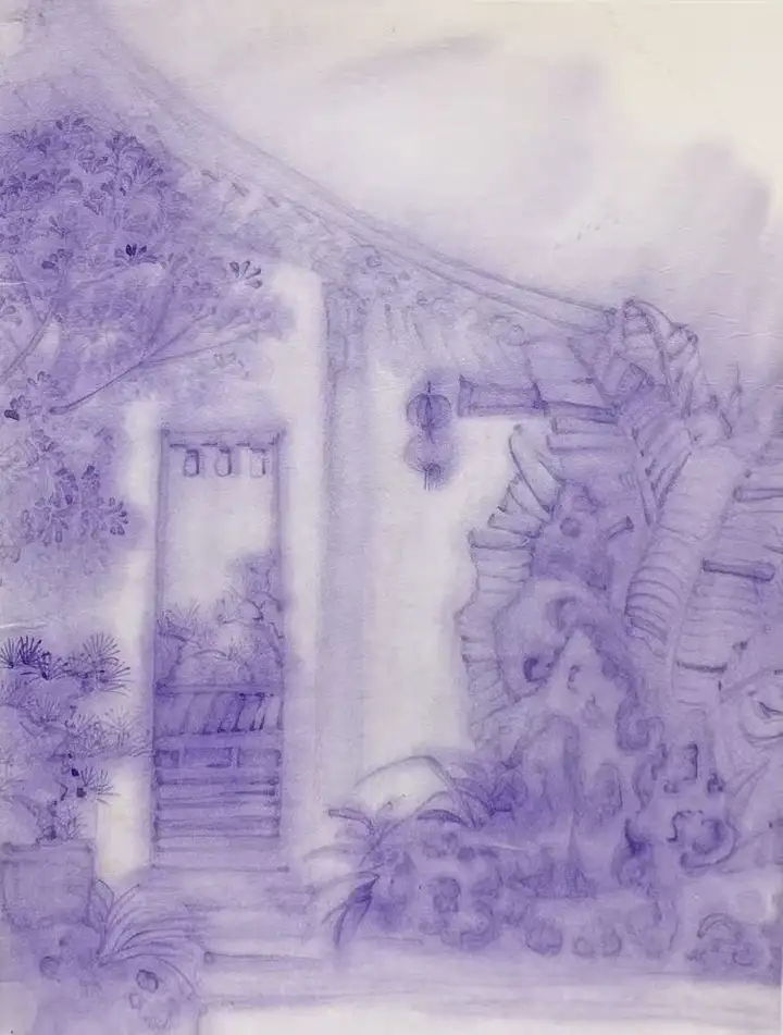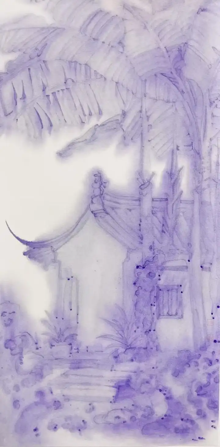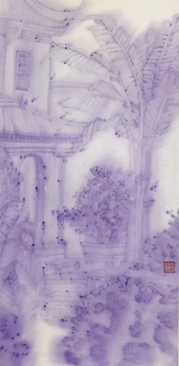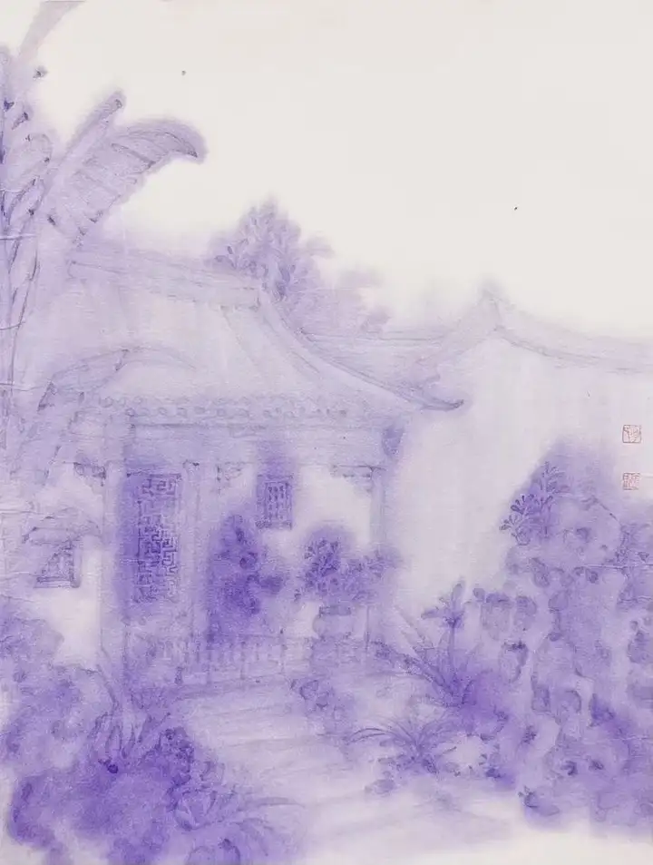在技法上,宁婉玉决然摒弃了俗常写实的刻板路径,转而以淡墨轻染为法。墨韵在宣纸上氤氲散开,如薄纱漫卷,似轻烟缥缈,营造出如梦似幻的朦胧氛围。