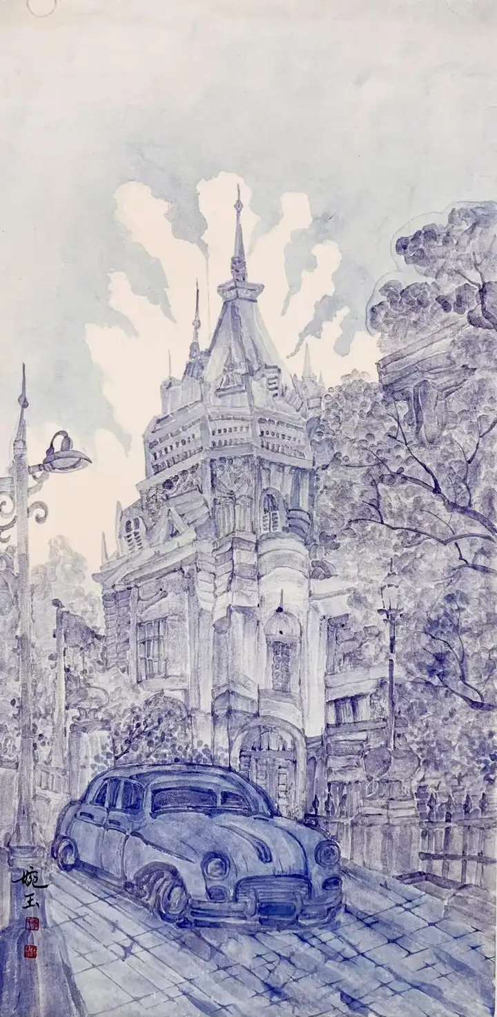她以灰墨草图风格勾勒城市轮廓,建筑不再是冰冷的石头,而是充满虚幻元素的奇妙构造。
