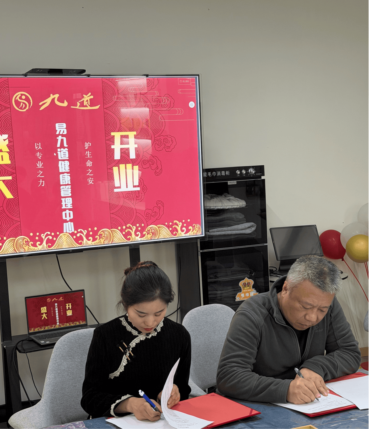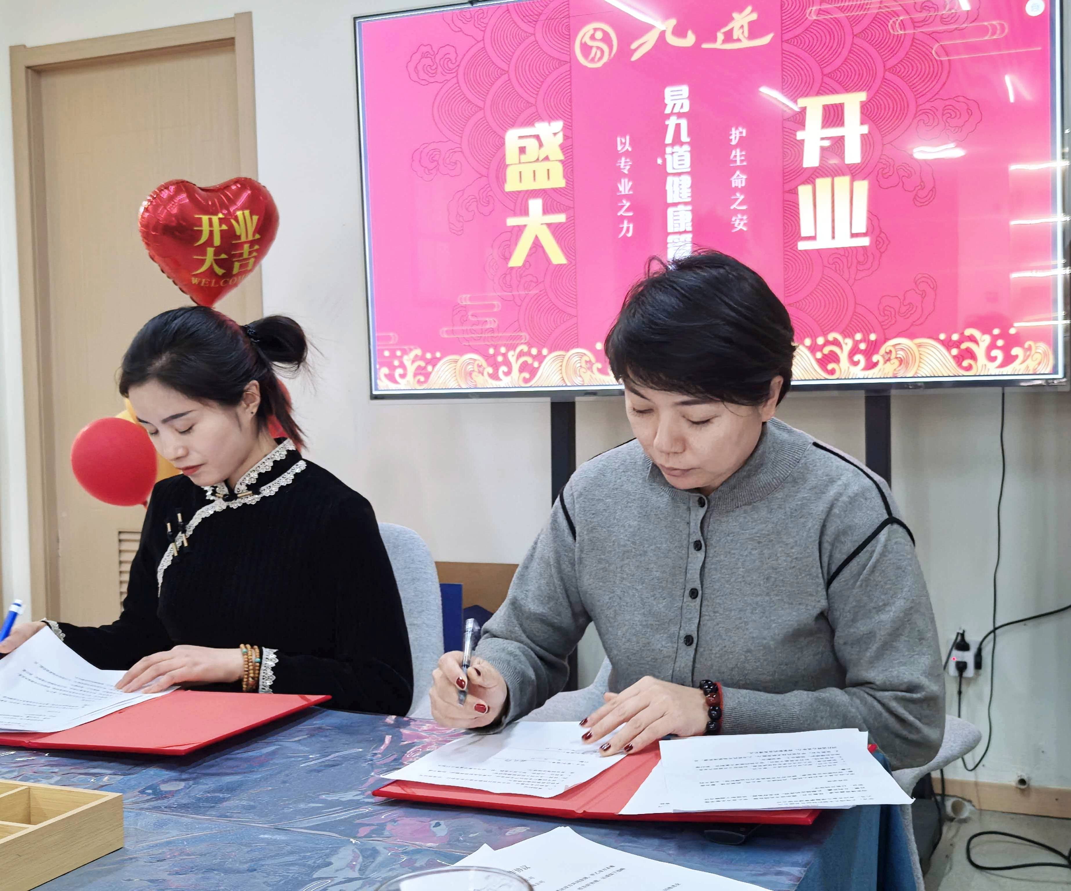2、大连鸣天生物科技研究有限公司(负氧离子空间)与易九道达成合作,杨弘珂女士与刘亚茹女士 完成签约,为中心增添特色健康服务模块,丰富康养体验。