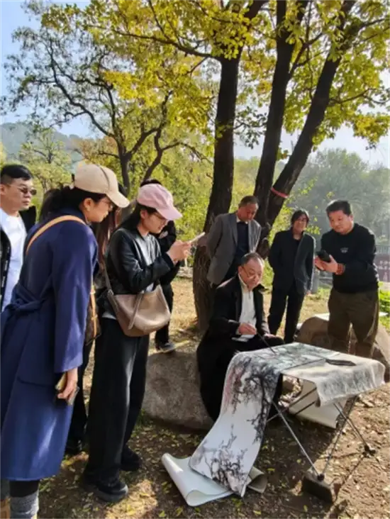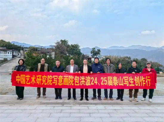 ——中国艺术研究院写意画院包洪波高研班泰山写生行金秋十月,丹桂盈芳。中国艺术研究院写意画院包洪波高研班一行十余人,在导师包洪波先生的带领下,自四方汇聚于泰山脚下,开启了一场为期七日的写生采风之旅。师生一行以笔墨为舟,以心灵为楫,意在以丹青描绘齐鲁风骨,以艺术语言诠释“五岳独尊”的雄浑气象。