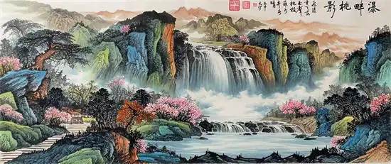 《瀑畔桃影》